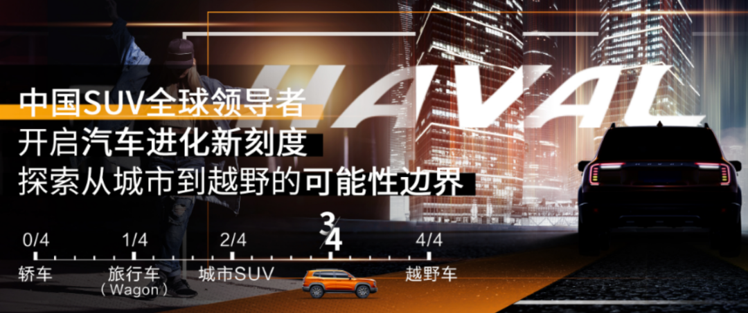 (上市发布会销售经理致辞) 新车一经亮相,活动现场便迅速聚集了众多粉丝,展现出其爆款的潜力——那它又是如何俘获广大“粉丝”的呢?接下来,小编将为你说说大狗的魅力在于何方! ![]() ![]() SUV车型进入国内市场已经有二十余年,但是随着时间的流逝和用户的不断年轻化,购车需求日趋个性与多样化,单一类型的SUV车型已经无法满足大家。越来越多的新一代潮野青年,渴望车辆可以兼顾城市SUV的舒适实用与硬派越野SUV的通过性。 需求决定市场,长城汽车基于对消费人群的洞察,发现了在城市SUV和越野SUV中之间仍存在巨大的需求空白。至此,哈弗大狗横空出世,一款能满足用户多元化需求的全新品类SUV。 或许你必须在“柴米油盐”中游走,但也不必放弃“诗和远方”。 事实上,乘用车发展至今已经历4种品类划分,分别是0刻度轿车、1/4刻度旅行车、2/4刻度城市SUV以及4/4刻度硬派越野车。其中,SUV作为运动型实用车,深受国人青睐,不过随着年轻一代消费群体崛起,购车需求日趋个性化与多样化,单一类型的SUV车型无法再满足大家了。
