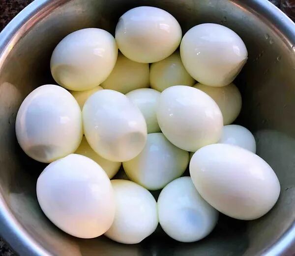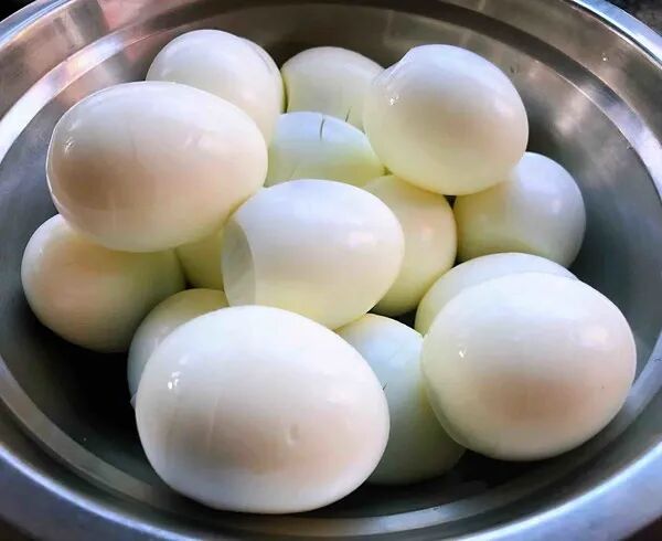 新鲜的鸡蛋煮熟用凉水冲凉这样更容易去皮