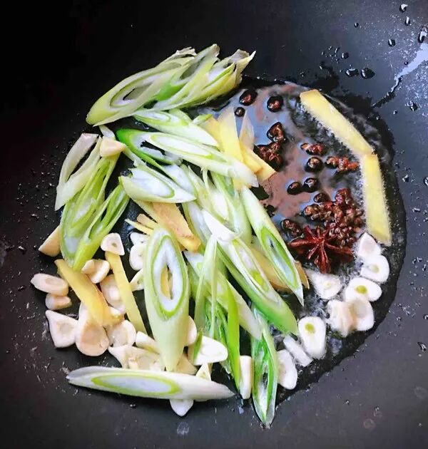 八角、葱、姜、蒜爆香