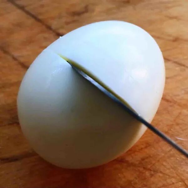 鸡蛋用小刀割出一条一条的纹路但