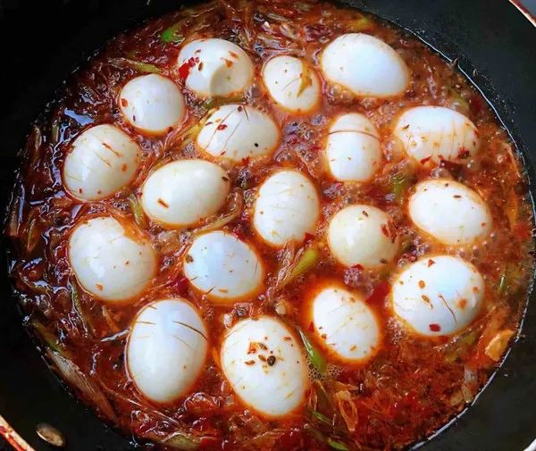 : 香辣啤酒卤蛋鸡蛋800克、葱10克姜5克、蒜10克红辣椒5克、孜然2勺芝麻2勺、油1勺郫县豆瓣酱2勺、啤酒1罐糖2勺、蚝油1勺一品鲜酱油0.5勺1.新鲜的鸡蛋煮熟用凉水冲凉这样更容易去皮2.鸡蛋依次去皮洗净备用3.鸡蛋用小刀 ...